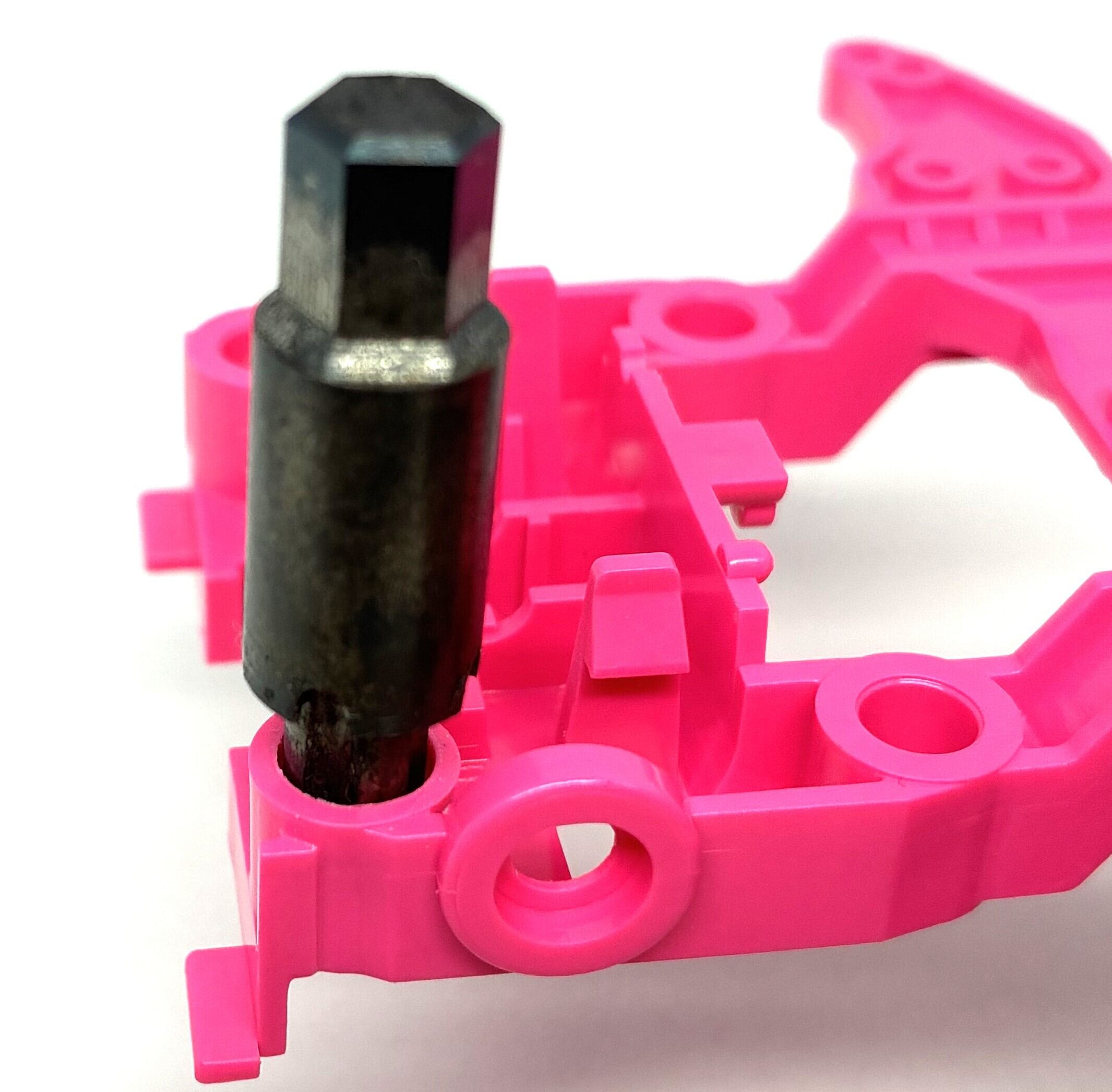 MSフロント、リアユニットはテーパー状に穴が開いておりSPをそのまま使用すると0.2mmほどズレが発生してしまいますがホリコムンダーCを使用する事により中心をとらえる事が出来ます。