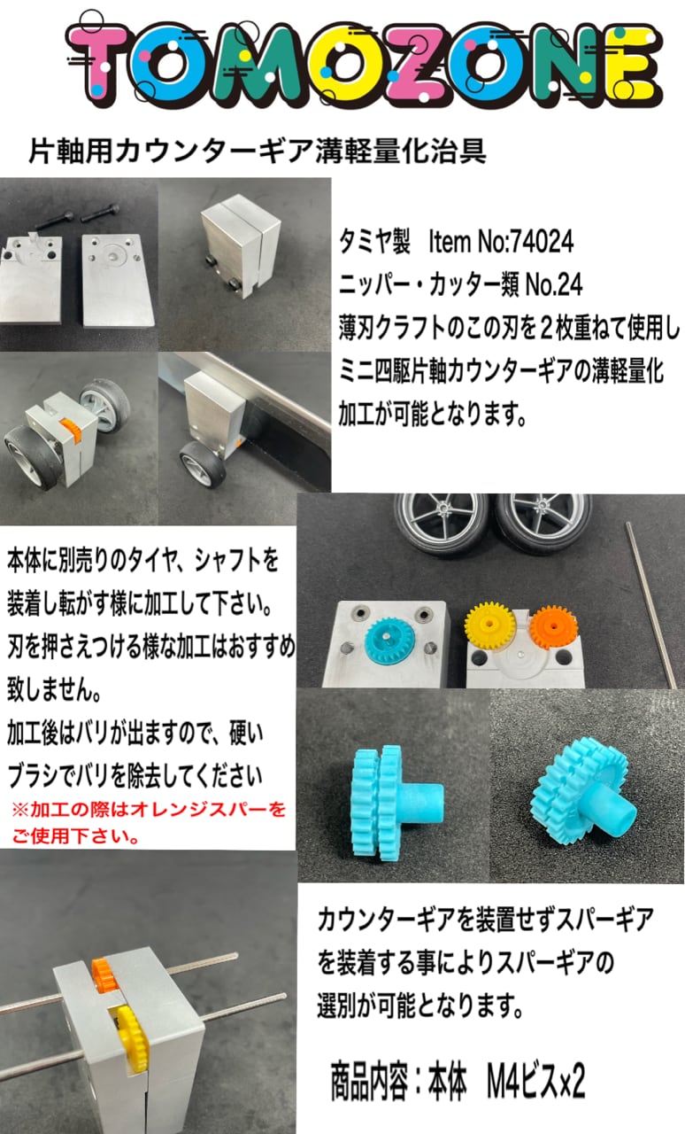 タミヤ製クラフトノコを2枚使用し方軸カウンターギアに溝加工をする事の出来る治具になります。